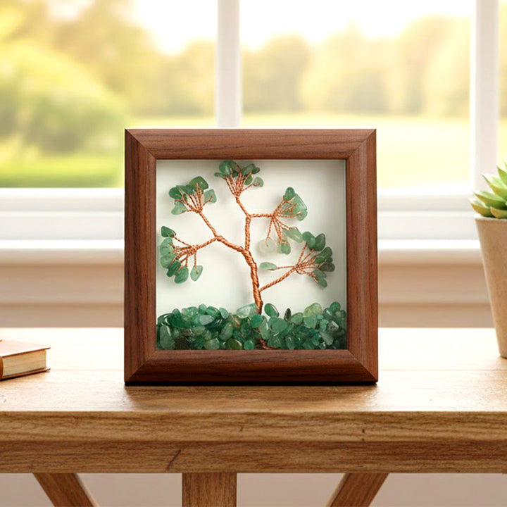 Green Aventurine Tree Frame | Crystal Tree Frame | Luck Crystal Decor | Healing Stone Tree Frame | Prosperity Crystal Frame | Spiritual Home Decor | Energy Healing Frame
