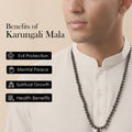 Devotees and astrologers believe that wearing a Karungali Wood Mala helps protect against negative energy, evil eye, and black magic, while also enhancing spiritual focus during meditation and prayer.