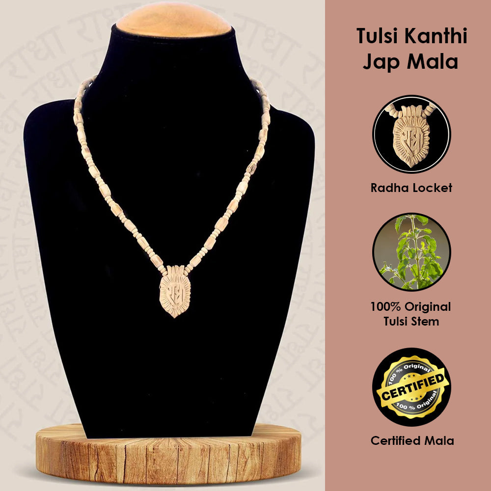 • Package Contains:Β 1 Pc 100% Original Holy Tulsi Kanthi Bead Mala With Wooden Radha Locket