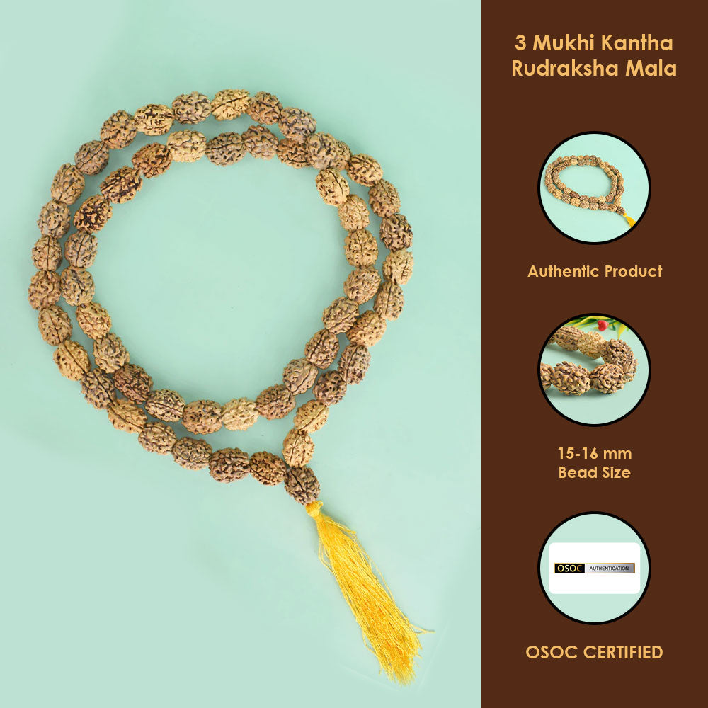 • Material : Made from High Quality 3 Mukhi Kantha Rudraksha Mala