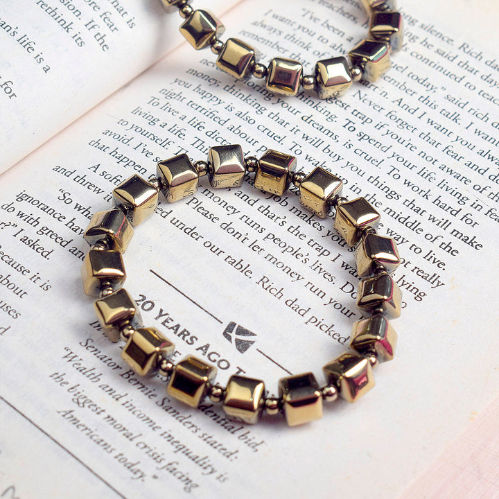 Buy Authentic Pyrite Crystal Square Beads Bracelet 8MM -Satvikstore.in – satvikstore.in