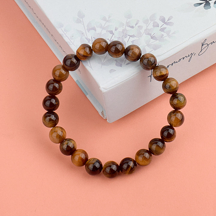 About Product: The Authentic Tiger Eye Crystal Bracelet for Reiki Healing 8 MM is crafted from premium natural Tiger Eye stones, known for their striking golden-brown bands and powerful grounding properties. Believed to boost courage, focus, and self-confidence, this bracelet is a favorite for anyone seeking mental clarity and protection from negative energy.