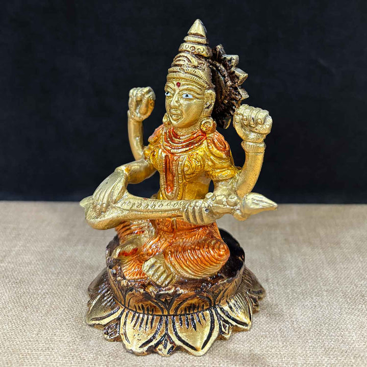 • Material: The Saraswati Mata Murti is made from High-Quality Brass Material