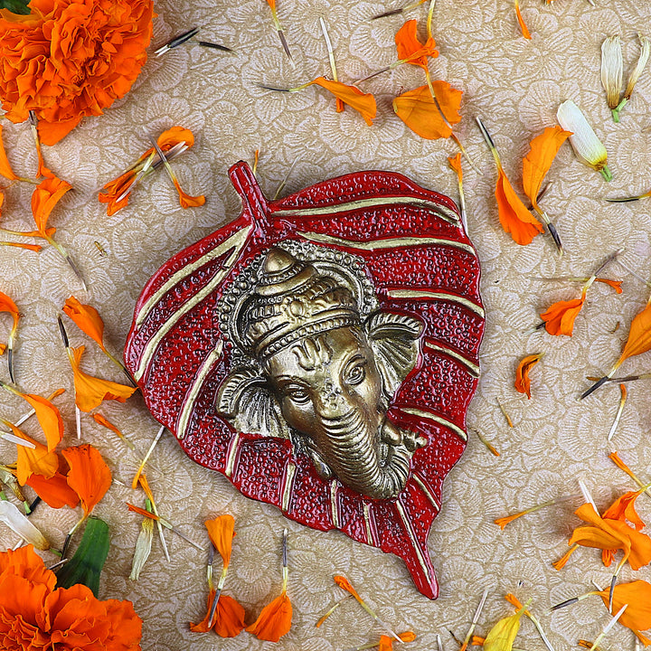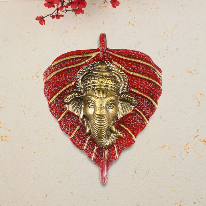 Buy Lord Ganesh Face on Leaf Patta Wall Hanging- Red | Satvikstore.in – satvikstore.in