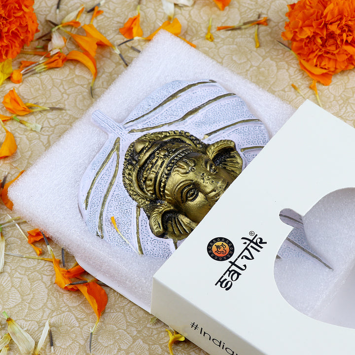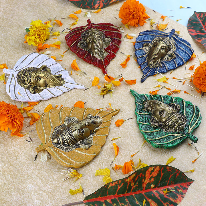 • Package Contains 1 Pc Designer Lord Ganesh Face on Leaf Statue Available in 5 Different Shades. Each Comes with Premium Gift Packing.