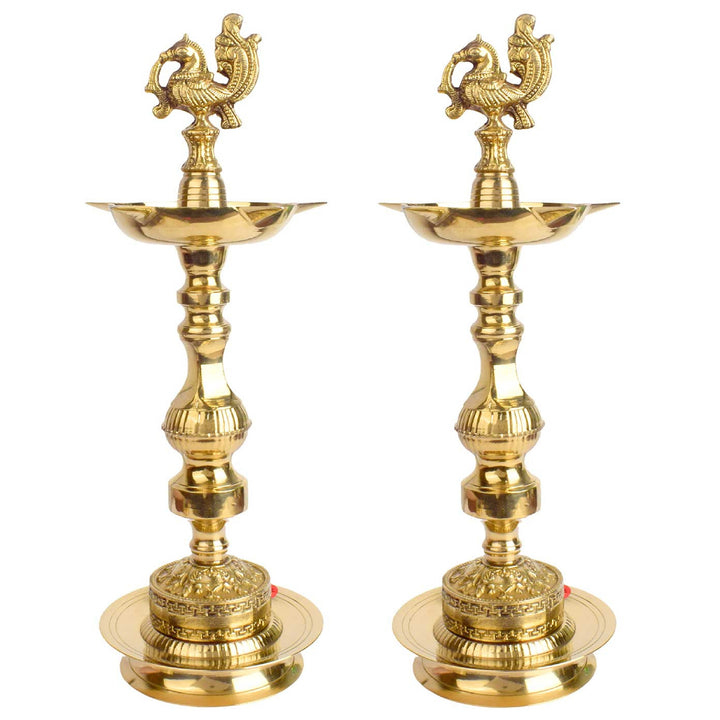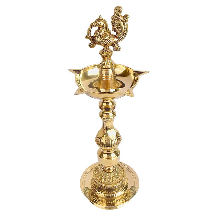 Buy 14 Inch Embossed Peacock Kerala Stand 1 Step Diya | Satvikstore.in – satvikstore.in