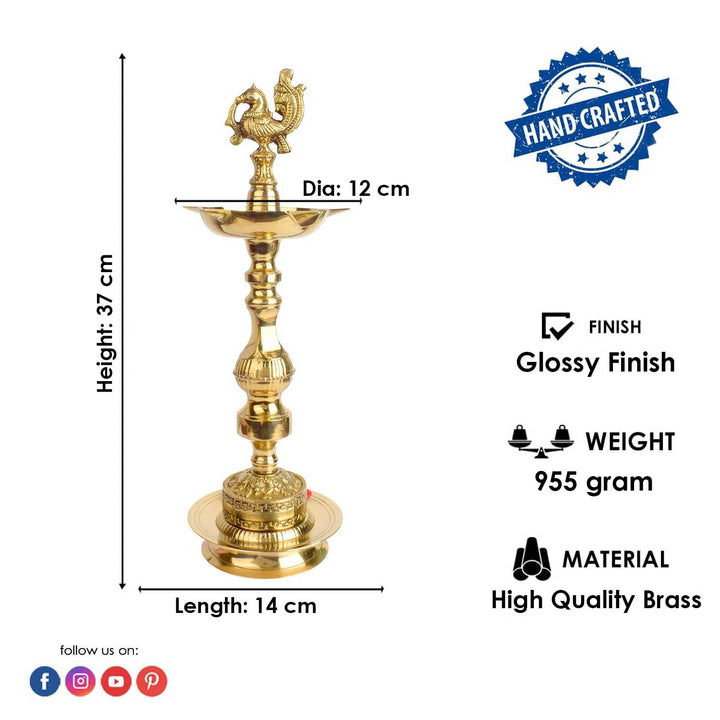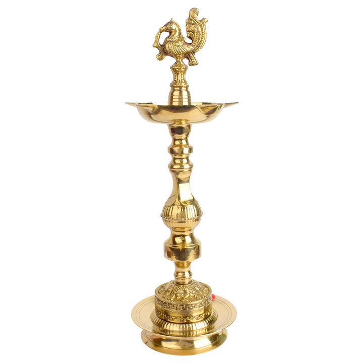 19 Inch Embossed Brass Peacock Kerala Samai Diya | Brass Peacock Diya | Kerala Samai Deepam | Embossed Brass Diya | Traditional Kerala Diya | Brass Oil Lamp | Spiritual Brass Lamp | Pooja Diya | Peacock Design Diya | Kerala Temple Lamp | Indian Ritual Lamp | Brass Diya for Pooja