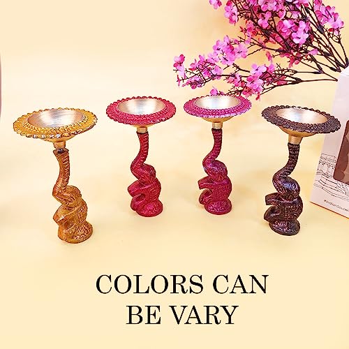 Multicolor Elephant Diya Metal Table Dia Laxmi Candle Tea Light Holder (Pack of 4)