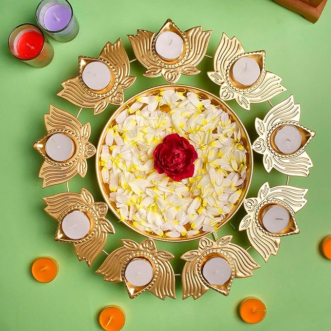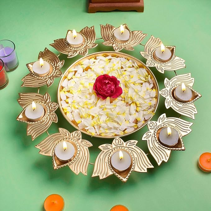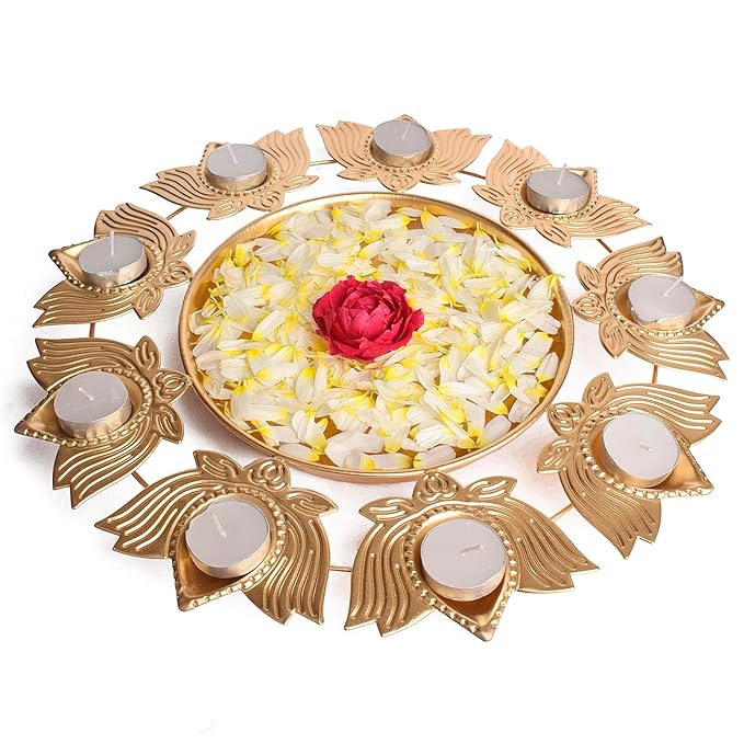 Buy Now | Lotus Petals Shape Metal Urli With Tea Light |Satvikstore.in – satvikstore.in