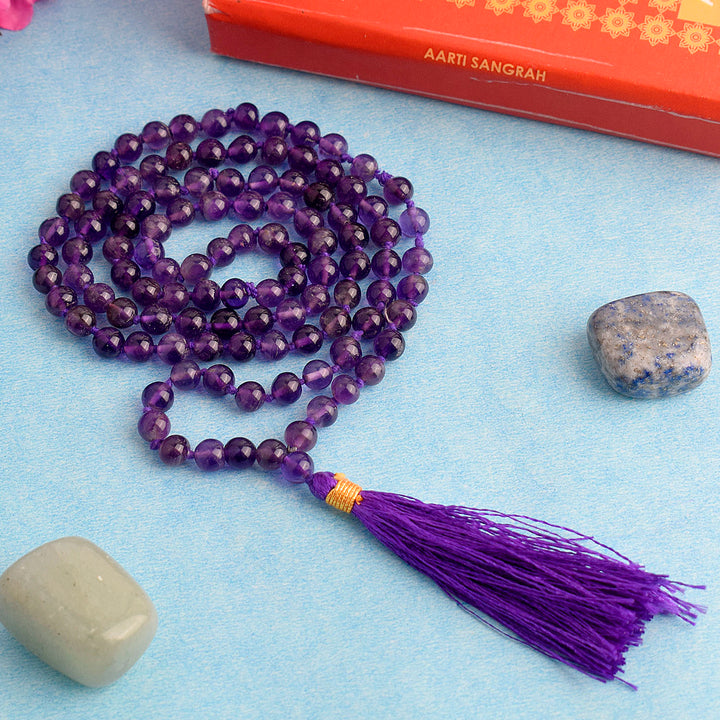 108 Beads Amethyst Crystal Jaap Mala for Chakra Healing