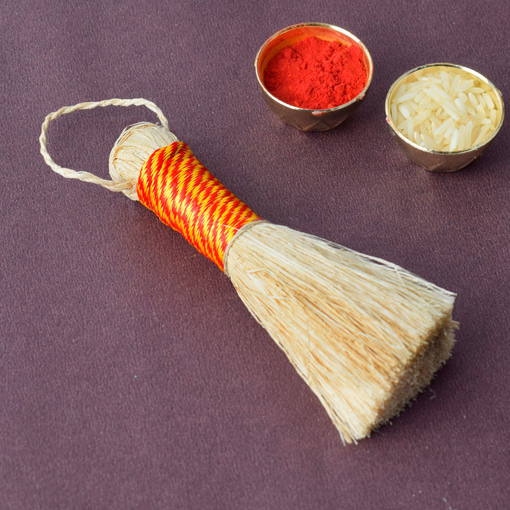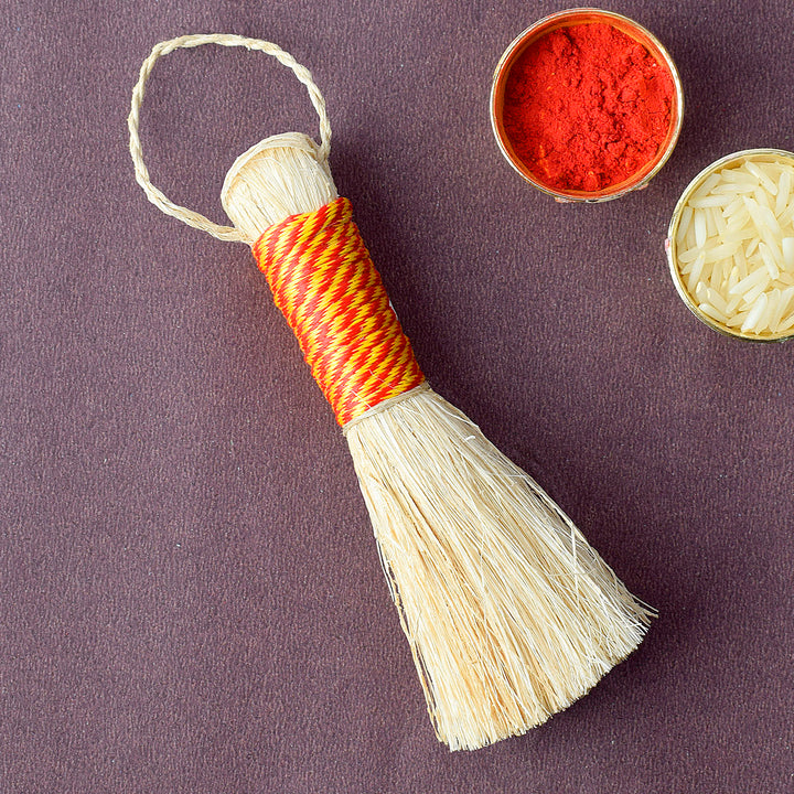 The Banana plant is a symbol of prosperity and holds a special place in ancient scriptures, associated with Lord Krishna and Goddess Lakshmi. Om Shanthi Puja Broom, crafted from pure Banana Stem Fiber, is designed for keeping your Puja space clean and dust-free. Its aesthetic design ensures thorough cleaning of every nook and corner, with an 12 centimeter height and a weight of approximately 25 grams. Keep your Puja space pure and invoke the blessings of Goddess Lakshmi with the Om Shanthi Puja Broom, a versatile tool for cleaning Puja rooms.