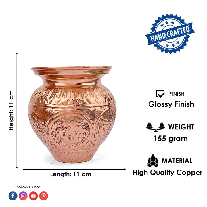 Copper Om Swastik Lota (Available in 3 Sizes)