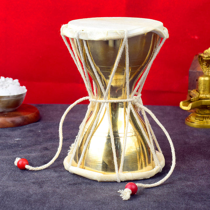 Buy Cosmic Brass Damru – Sacred Drum for Lord Shiva Worship at Satvikstore.in – satvikstore.in