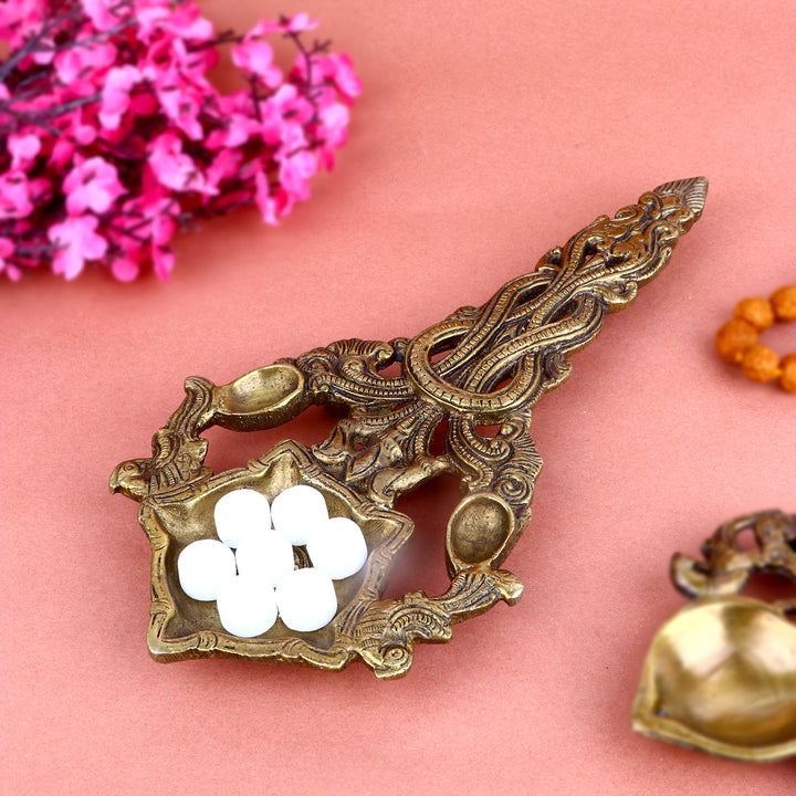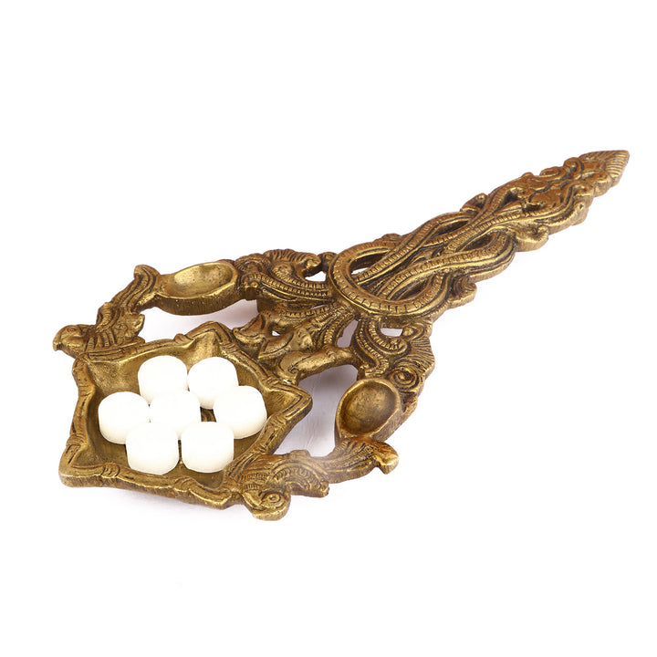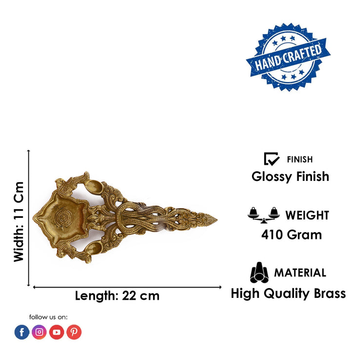 • Material:   Designer Brass Pooja Aarti Spoon Medium is made from High Quality and Virgin Brass Material.