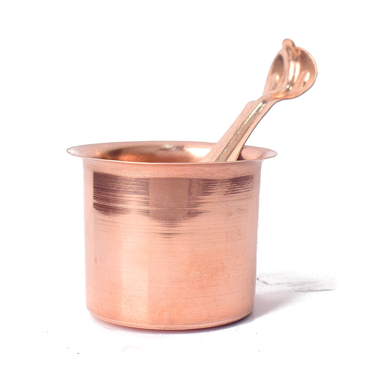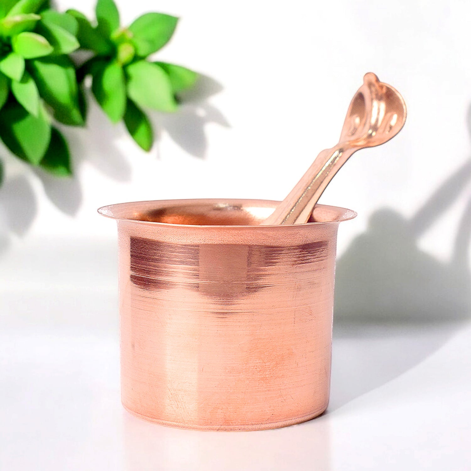 Premium Copper Panch Patra | Copper Puja Glass | Small Copper Panch Patra | Copper Puja Spoon | Sacred Copper Glass | Copper Ritual Set | Puja Glass and Spoon | Copper Pooja Essentials | Small Copper Patra | Traditional Copper Rituals | Copper Glass for Pooja | Spiritual Copper Glass Set | Panch Patra Set for Puja | Pure Copper Ritual Set | Copper Puja Accessories