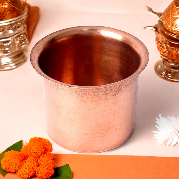 About Product: The Pure Copper Panch Patra Worship Glass and Spoon Set is designed to enhance your spiritual rituals with its authentic, traditional craftsmanship. Made from high-quality, rust-resistant pure copper, it ensures durability and long-lasting shine. The set includes a beautifully crafted glass and spoon, both lightweight and easy to handle during pujas and homas. Its elegant, polished finish adds a touch of grace to your prayer space. Easy to clean and maintain, this set preserves its natural luster for years. Perfect for daily use or as a thoughtful gift, it elevates the sacredness of your religious practices