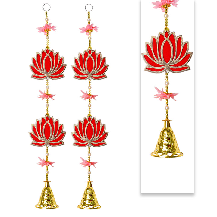 Attractive 2 Tier Lotus with Bells Wall Hanging Backdrop (1Pair Latkans) For Wall Decoration