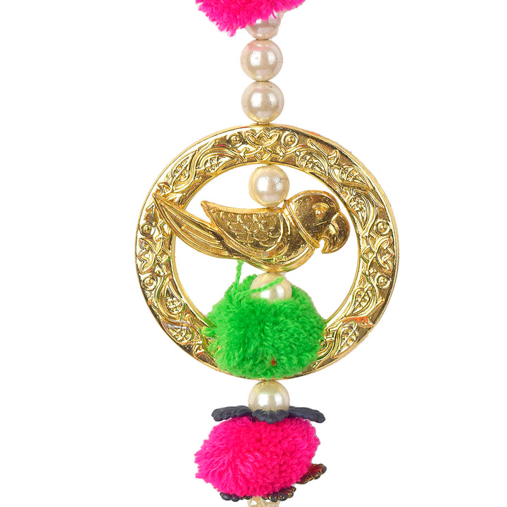 parrot wall hanging | pom pom wall decor | ethnic wall hanging | parrot design decor | traditional Indian wall art | handcrafted wall hanging | colorful wall hanging | festive wall decoration | decorative pom pom hanging |