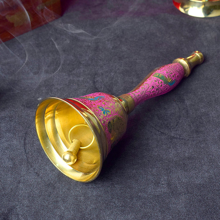 This brass pooja ghanti is made from 100% pure brass, ensuring durability, anti-tarnish quality, and a clear tone that resonates longer than ordinary bells. Available in multiple sizes—Small (4”), Medium (6”), and Large (8” and above)—each piece comes with beautifully hand-engraved motifs, such as Peacocks, Elephants, Floral patterns, or classic plain designs. These traditional carvings represent cultural and spiritual symbolism rooted in ancient Indian heritage. Whether you're setting up a home temple, using it in a mandir, or gifting it during a religious celebration, this handcrafted brass puja bell is perfect for all uses and occasions.