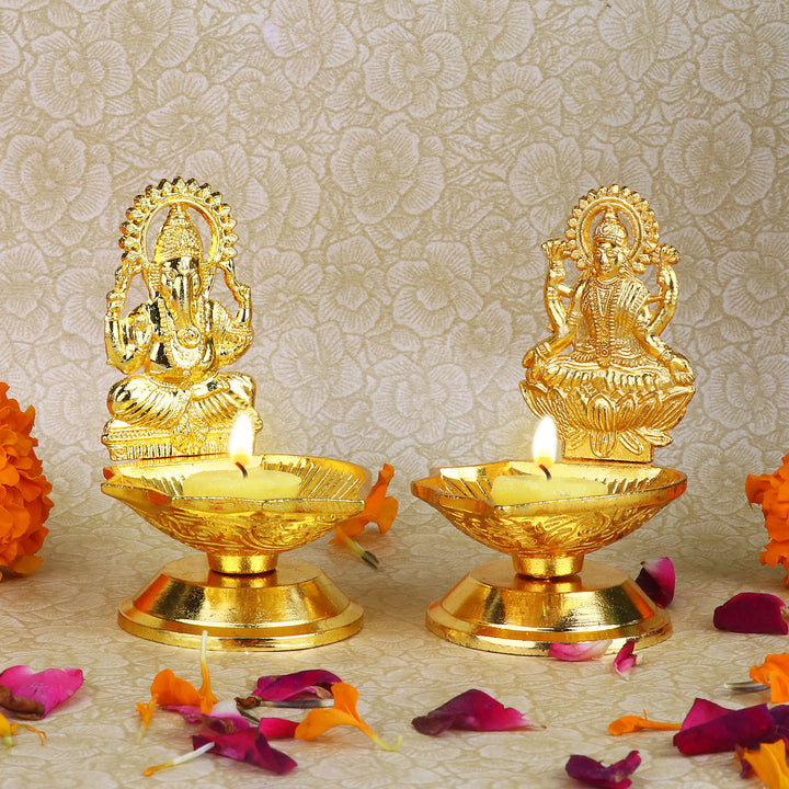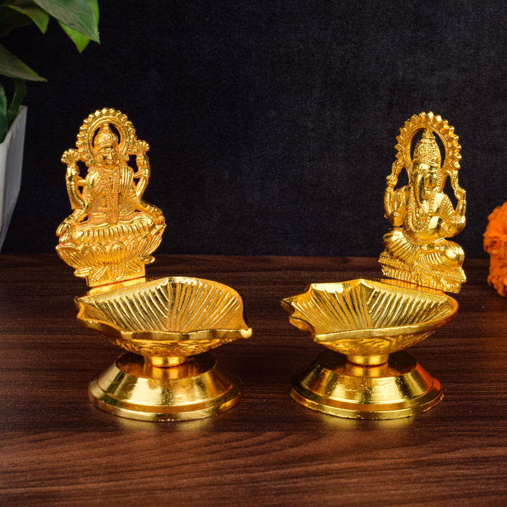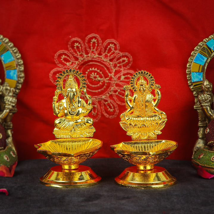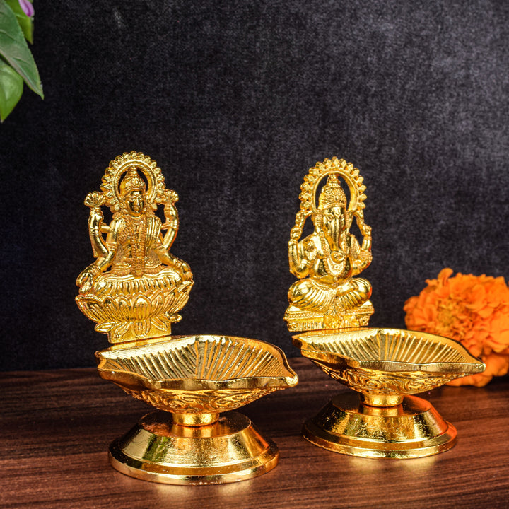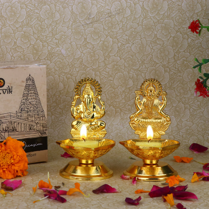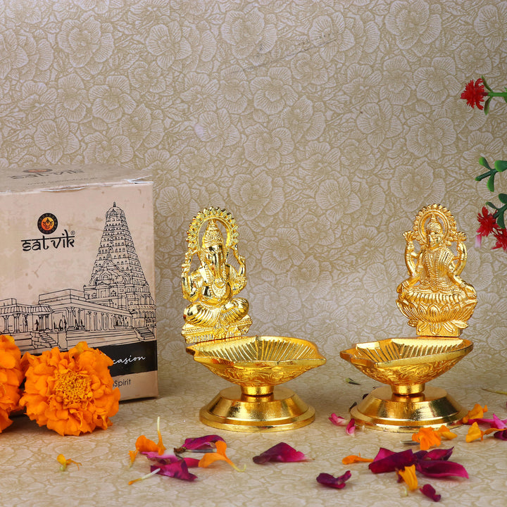 Shop 2 Pc Laxmi Ganesha Pair Metal Diya | Buy Online | Satvikstore.in – satvikstore.in