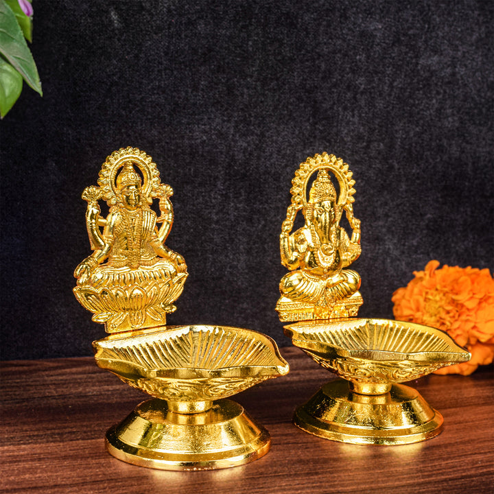 Laxmi Ganesha Diya | Metal Diya Pair | Lakshmi Ganesha Lamp | Hindu Pooja Diyas | Spiritual Diya Pair | Ganesha Lakshmi Lamp | Religious Diya Pair | Home Decor Diya | Lakshmi Ganesha Idol diya |