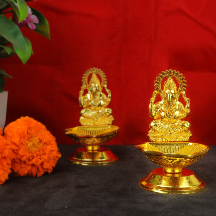 2 Pc Laxmi Ganesha Pair Metal Diya