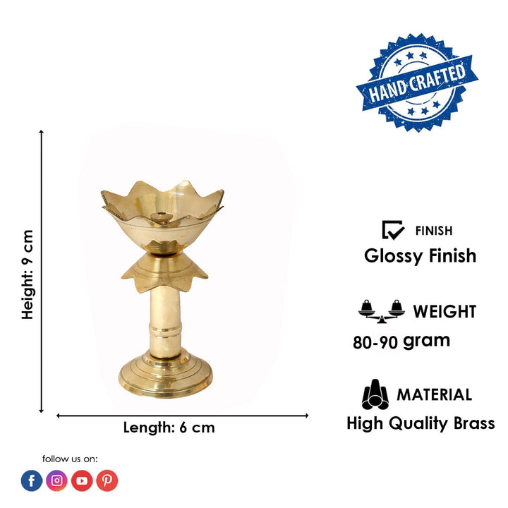 About Product:Β Illuminate your sacred space with this beautifully handcrafted 3.5 inch Kamal Stand Brass Diya. Featuring a stunning lotus (kamal) base design, this diya symbolizes purity, enlightenment, and spiritual awakeningβ€”perfect for uplifting any devotional atmosphere.Crafted from high-quality solid brass, this diya is ideal for placing on your pooja altar, home temple, or as a decorative centerpiece during spiritual ceremonies. Its compact size and graceful form make it a radiant addition to daily rituals, Diwali, Navratri, or other auspicious occasions.Perfect as a spiritual gift or devotional dΓ©cor piece, this diya blends traditional Indian craftsmanship and sacred symbolism, bringing peace and beauty into your home.
