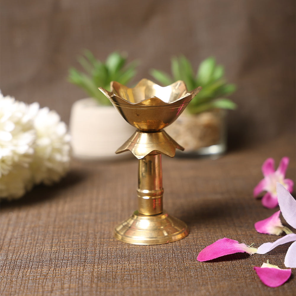 3.5 Kamal Stand Brass Diya – Elegant Brass Oil Lamp