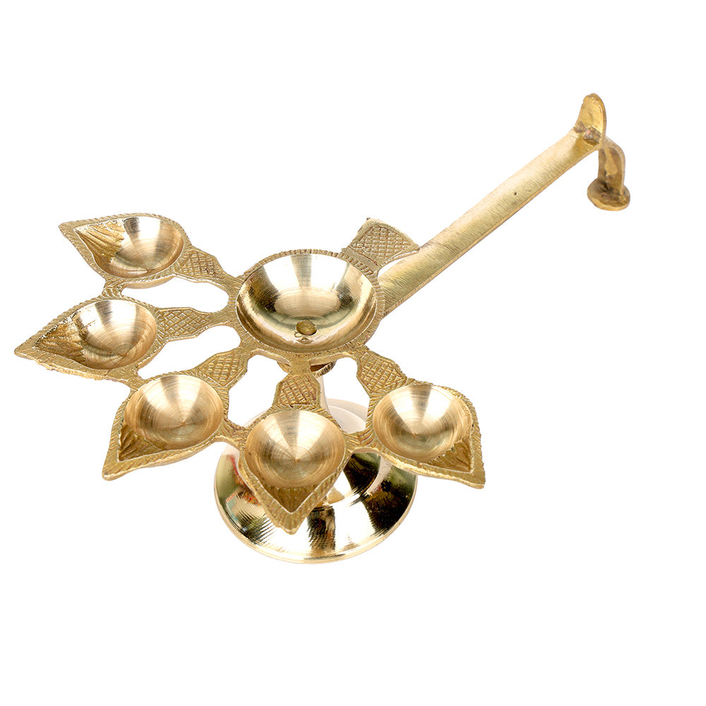 Brass 5 Mukhi Aarti Diya with Handle