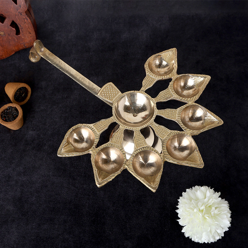 Buy Online | Brass 7 Mukhi Aarti Diya with Handle | Satvikstore.in – satvikstore.in