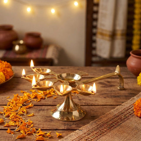Brass 5 Mukhi Aarti Diya wi...