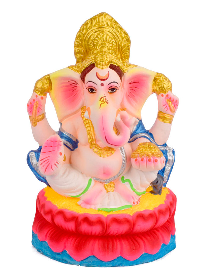 Eco Friendly Ganesha statues are made of 100% biodegradable and eco-friendly material by using Shadu Mati Clay Mitti, which dissolves easily in water. The colours used are also natural, and they decompose and dissolve in water easily. Although they have been made all across India, West Bengal and Maharashtra often employ skilled artisans to make them.