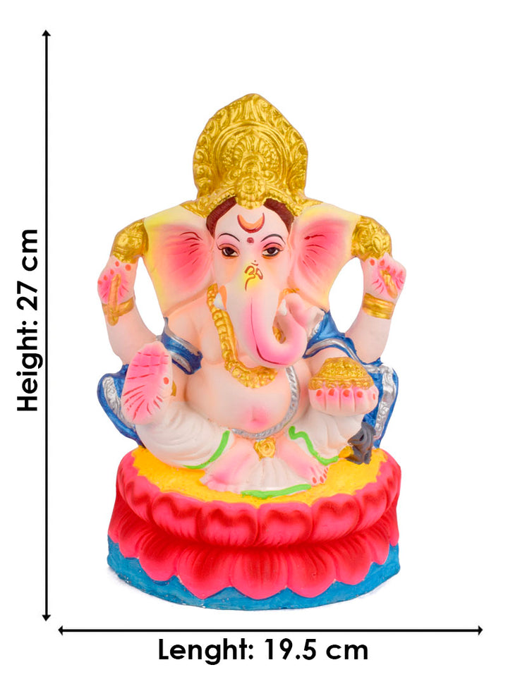 Material: Our Shuban Eco-Friendly Ganesha Idol are Made of 100% Bio-degradable Eco Friendly Mud/Mitti. Sadhu Matti Clay.Hand-painted with Eco Friendly Non-Toxic Multi Colors.