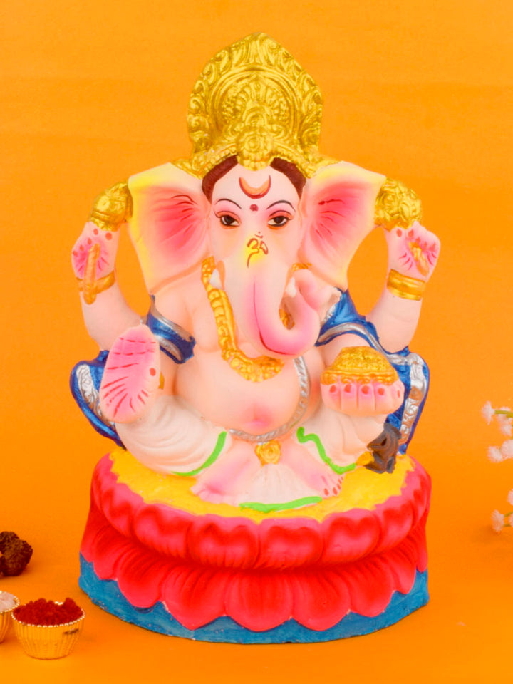 These True eco friendly Ganpati idols are also available in multi-colour options in red, white, yellow, green, white, pink, purple, blue, orange, gold, and other vibrant colours at the best price compared to the market online and come in beautiful packaging to gift to your relatives and friends. Eco Friendly Ganesha Idols are available in the Latest and Designer Collection of 2023 with Pagdi Ganesha, Mukut Ganpati, Ganeha Sitting in Chair Singashan, Bal Ganesha, Standing Ganesha, Lal Bagh ka Raja Ganpati Murti, Lalbaugcha Raja Ganesha Idol, and Many More.