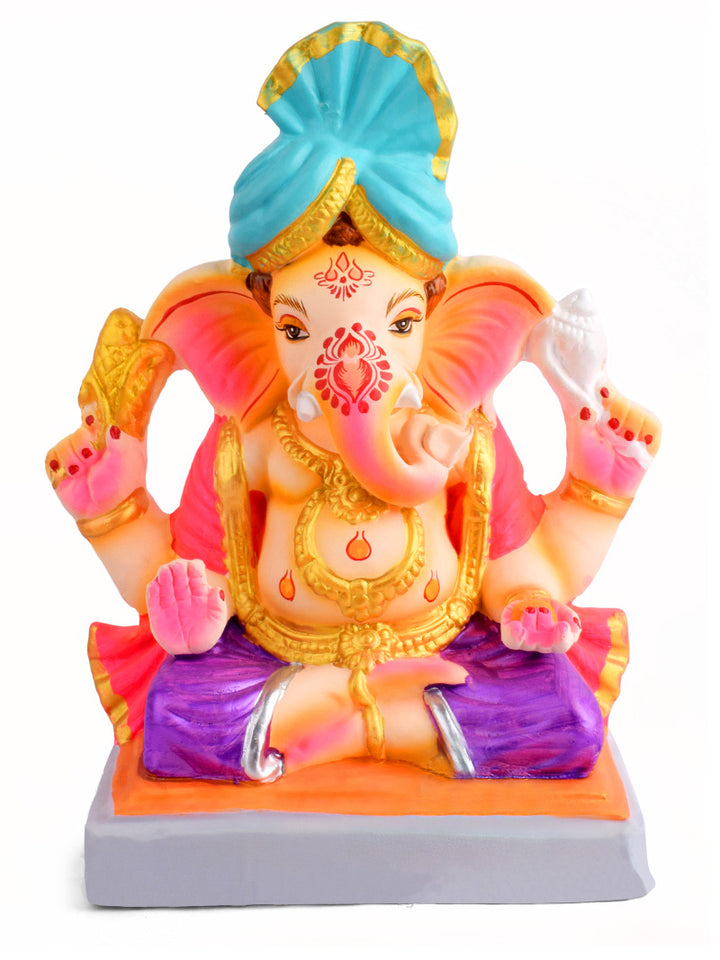 Material: Our Sarvatman Eco Friendly Ganesha With Pagdi 13 Inches Idol are Made of 100% Bio-degradable Eco Friendly Mud/Mitti. Sadhu Matti Clay.