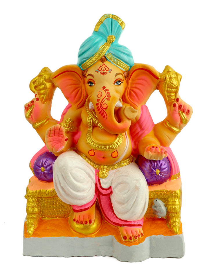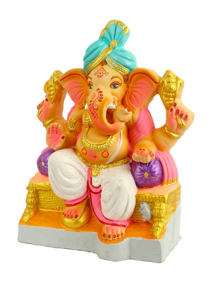 Eco Friendly Ganesha statues are made of 100% biodegradable and eco-friendly material by using Shadu Mati Clay Mitti, which dissolves easily in water. The colours used are also natural, and they decompose and dissolve in water easily. Although they have been made all across India, West Bengal and Maharashtra often employ skilled artisans to make them.