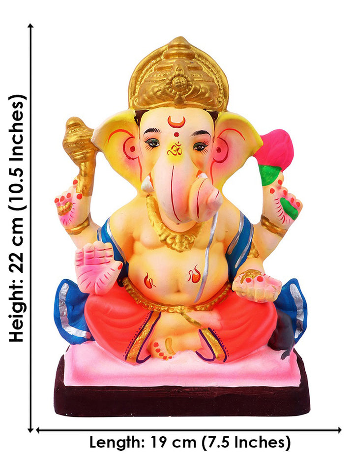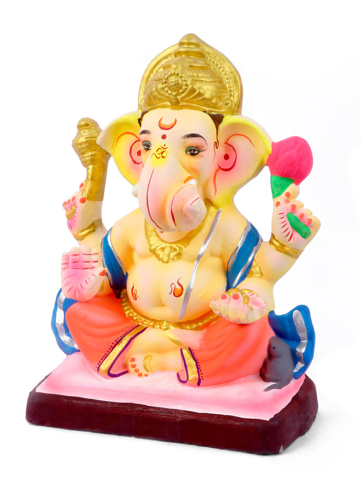 Eco Friendly Ganesha statues are made of 100% biodegradable and eco-friendly material by using Shadu Mati Clay Mitti, which dissolves easily in water. The colours used are also natural, and they decompose and dissolve in water easily. Although they have been made all across India, West Bengal and Maharashtra often employ skilled artisans to make them.