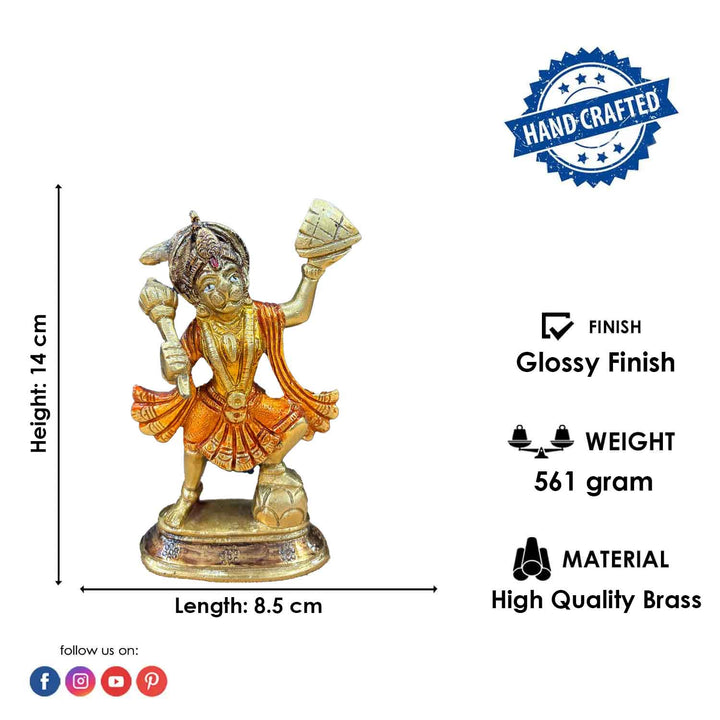 • Item Name: 5.5 Inch Pure Brass Hanuman Statue with Sanjeevani Pahar.