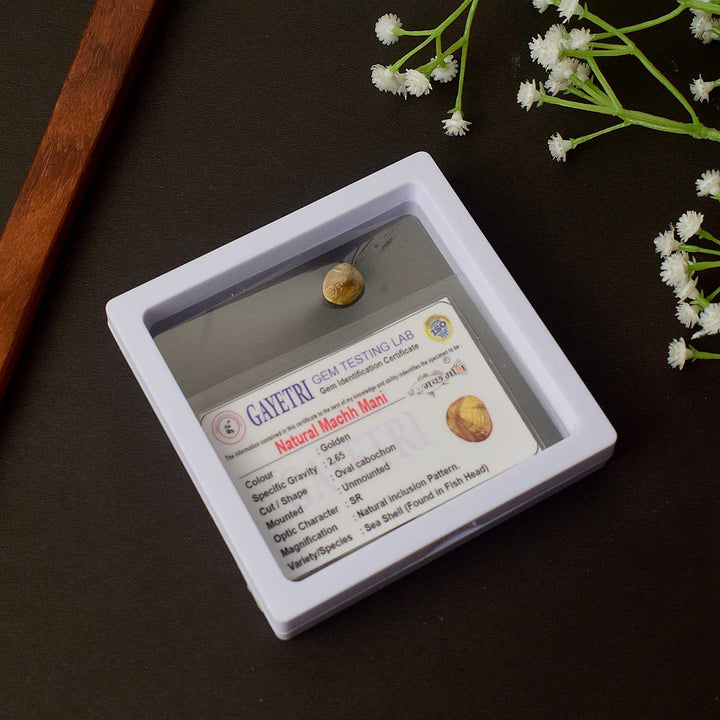 • Item Name: Certified Natural Machmani / Machh Mani in Golden Finish