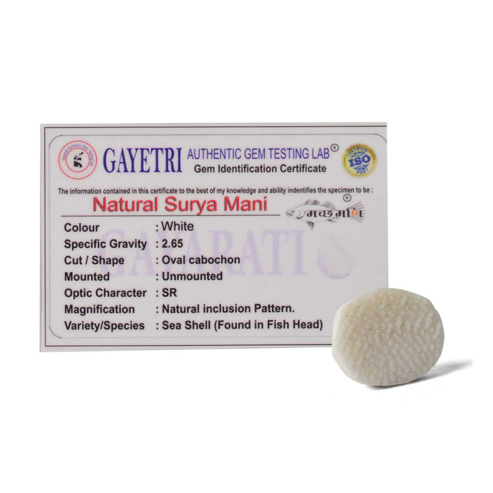 • Item Name: Certified Surya Mani / Machh Mani in White Finish