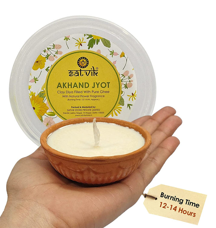 Buy: Satvik Pure Desi Ghee Akhand Jyot 12 to 14 Hours Burning Time – satvikstore.in