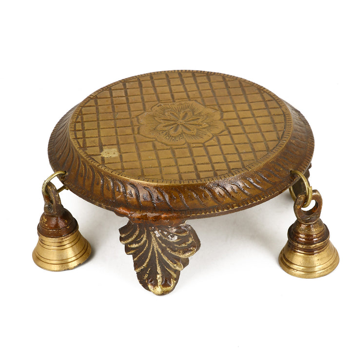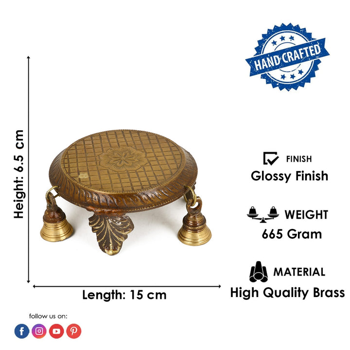 Decorative Brass Chowki | Brass Chowki with Bells | Pooja Platform Brass | Brass Chowki for Home Temple | Antique Brass Chowki | Premium Brass Chowki for Sale | Handmade Brass Chowki | Brass Chowki with Bells |Β