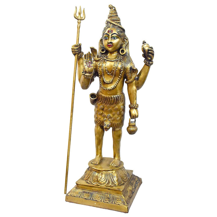 • Material: The Large Brass Standing Lord Shiva Statue - Idol with Trishul & Damaru is made from Pure Brass Virgin Material.
