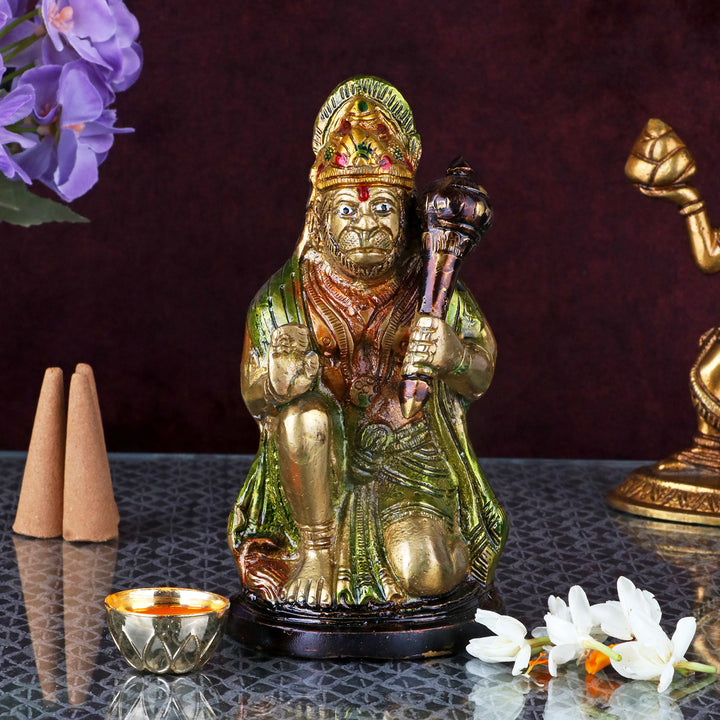 Brass Hanuman Statue | Hanuman Brass Murti | Brass Gift Item for Housewarming |  Antique Finish Bajrangbali Statue | Exclusive Brass Idol | Brass Idol | Brass Seated Hanuman Statue |