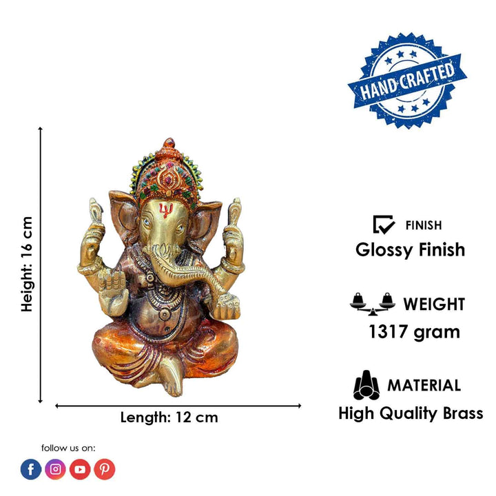 • Material: The Ganesh Idol is made from Pure Brass Virgin Material.