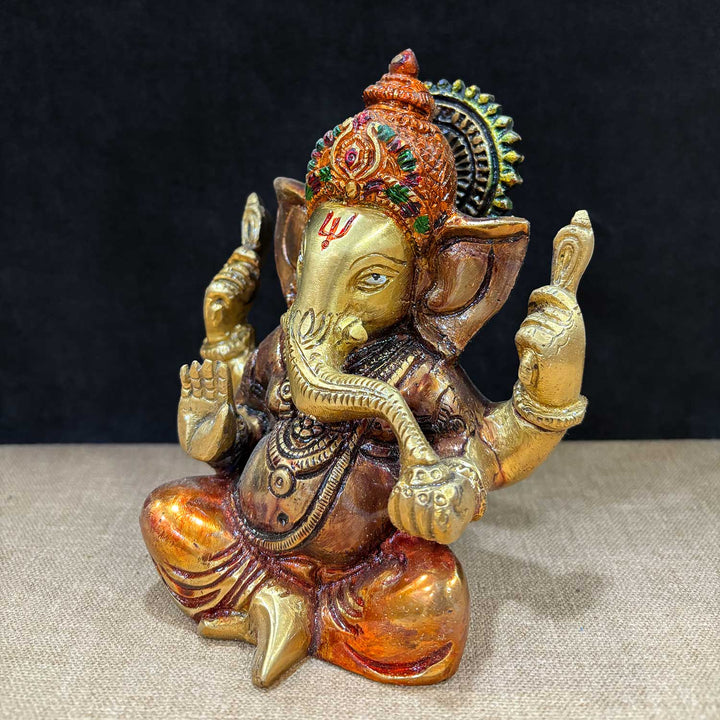Brass Ganpati Idol | Handcrafted Ganesha Idol in Brass | Elegant Ganesha Brass Idol | Brass Lord Ganesha Idol | Puja Room Decor | Brass Gift Item for Housewarming | Brass Ganesha Idol |