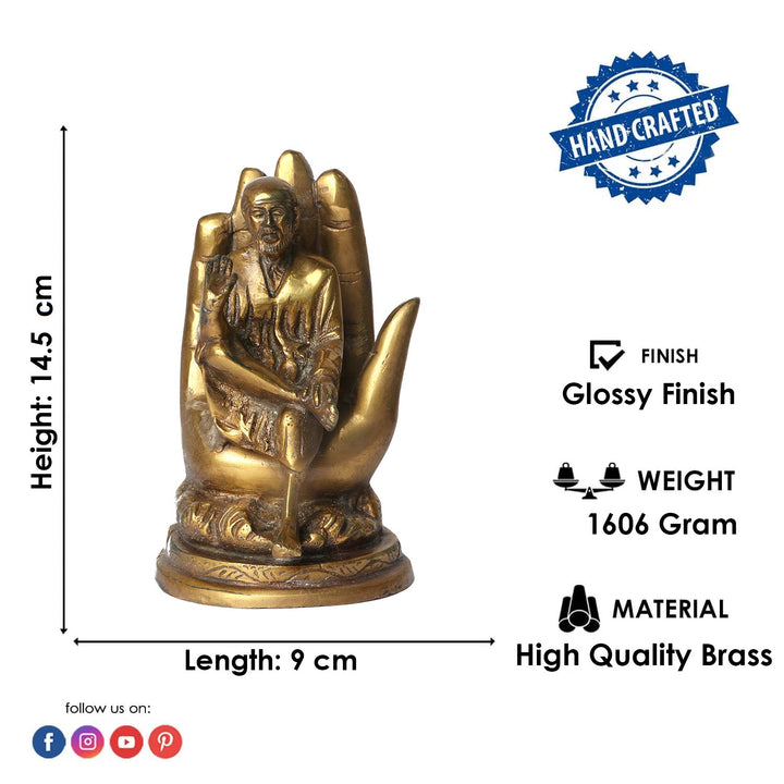 6.4 Inch Pure Brass Shirdi Sai on Hand Statue