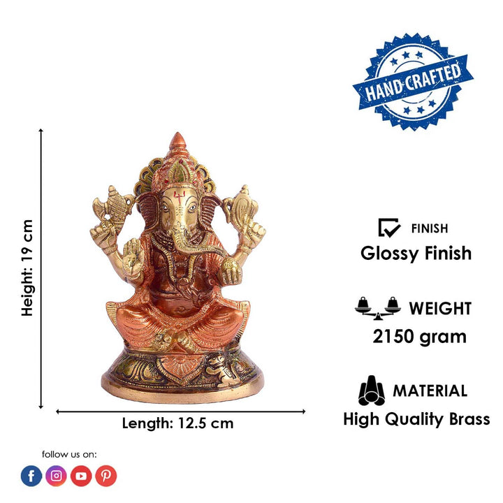 • Item Name: 7.5 Inch Chaturbhuj Ganesha Pure Brass Idol