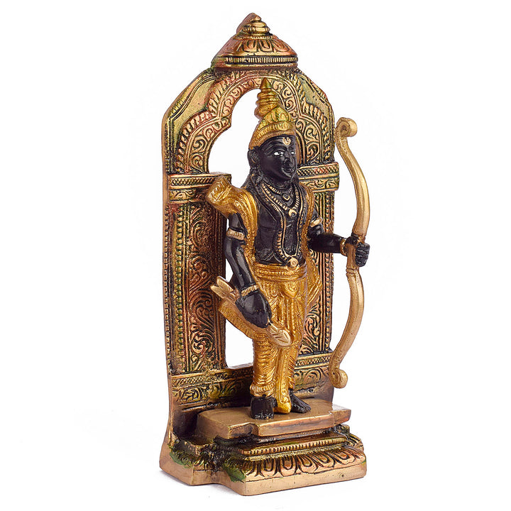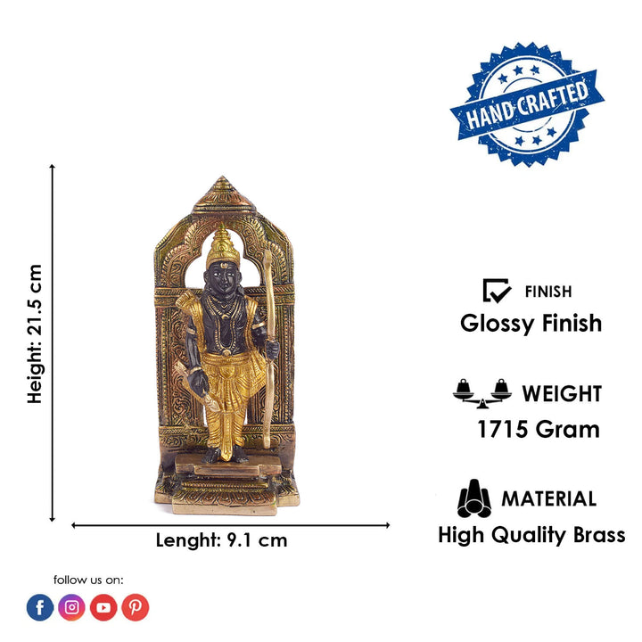 Antique Finish Ram Idol | Puja Room Decor | Brass Ram Idol with Bow | Handcrafted Ram with Bow | Brass Standing Ram Statue | Brass Gift Item for Housewarming | Premium Brass Idol for Sale | Brass Idol |