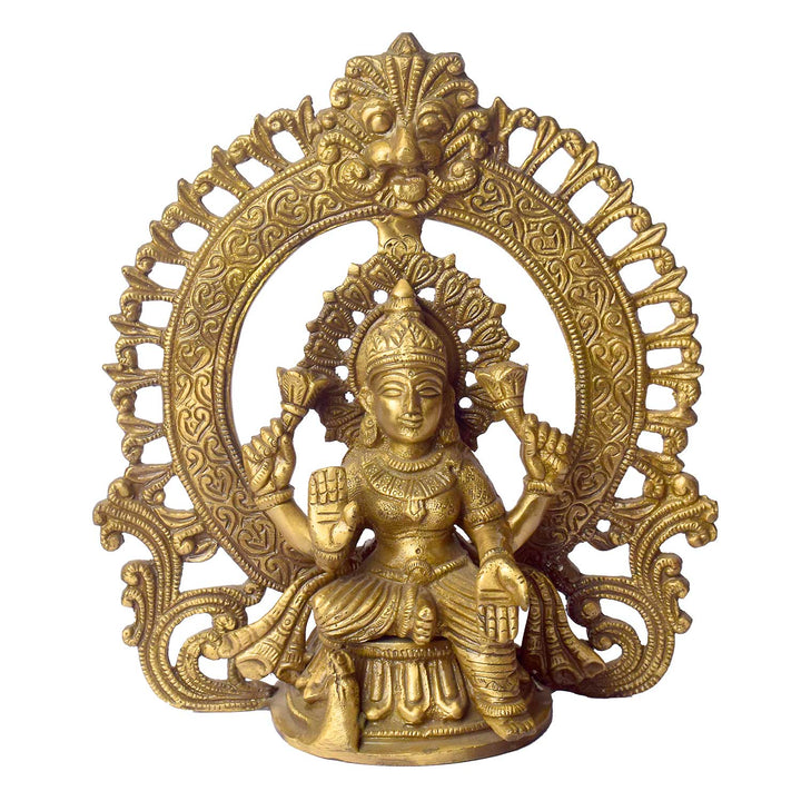 Brass Lakshmi Idol | Brass Lakshmi statue with Prabhaval | Lakshmi with Prabhaval | Puja Room Decor | Handmade Lakshmi Idol | Antique Finish Brass Idol | Brass Idol | Lakshmi With Prabhaval arch Idol |